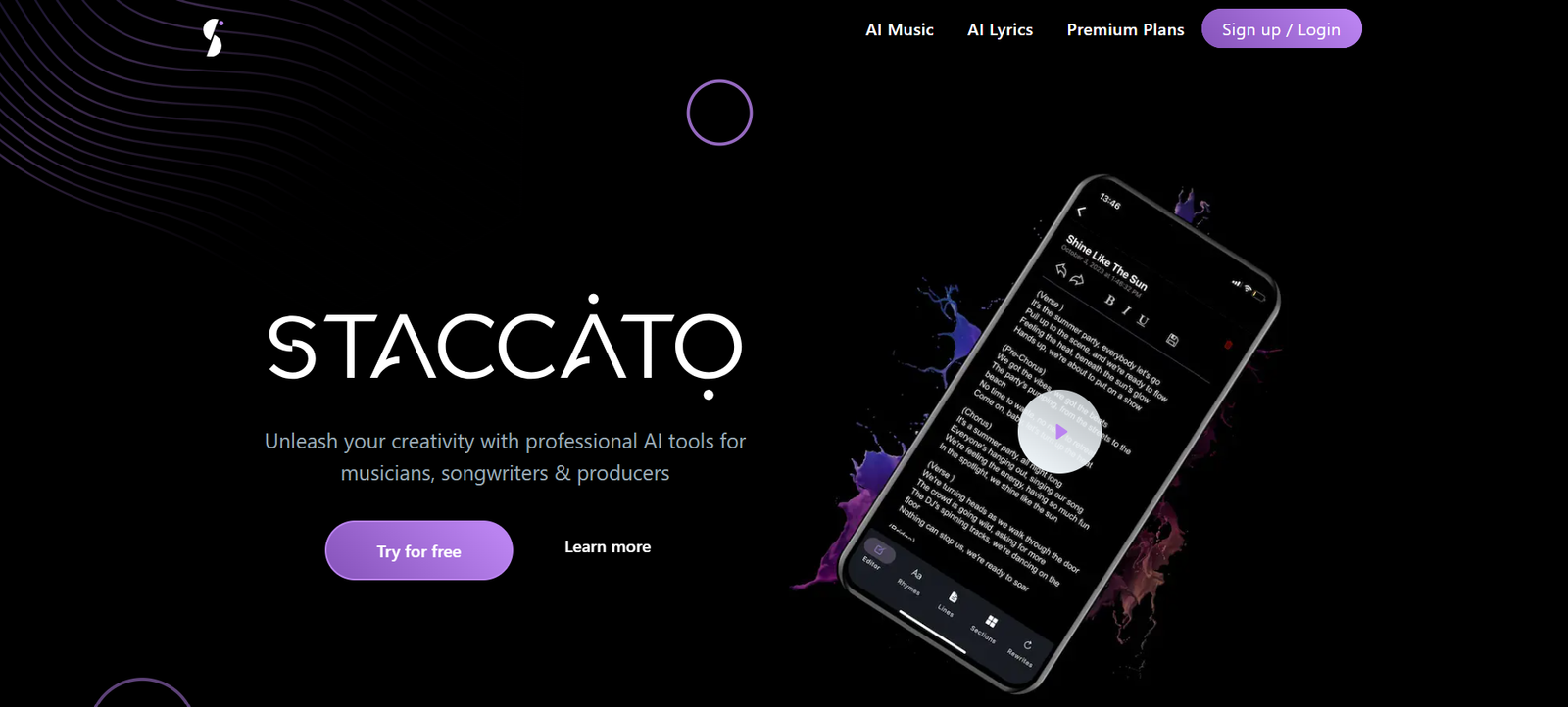 AI-driven songwriting platform that generates lyrics and music to inspire and assist artists in their creative process.