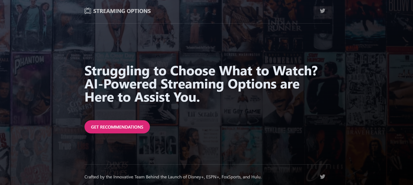 StreamingOptions.com is an innovative AI-powered platform designed to streamline the search for optimal streaming services. Developed by the experienced team behind major platforms like Disney+, ESPN+, FoxSports, and Hulu, this tool helps users discover the best streaming services tailored to their needs. By leveraging advanced AI algorithms, StreamingOptions.com offers personalized recommendations, ensuring users find the perfect streaming solutions efficiently.