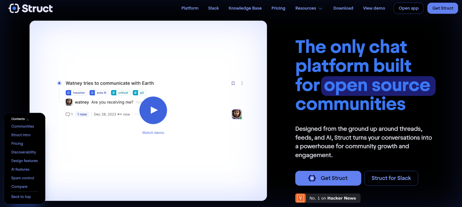Struct is an AI-powered chat platform specifically designed for open source communities. It integrates threads, feeds, and AI to transform conversations into a tool for community growth and engagement. With Struct, users can enhance their productivity and ensure valuable discussions are publicly indexed for greater visibility.