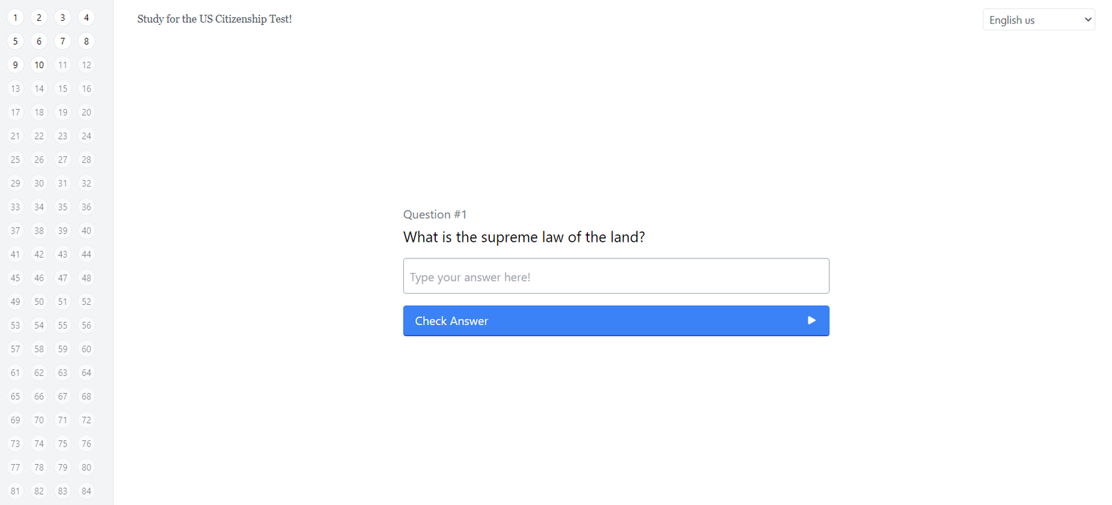 The tool includes all 100 potential questions that may be asked during the oral test administered by a USCIS officer. Users are required to answer 10 of these questions and must get at least 6 correct to pass. This preparation resource ensures that users are well-versed with the material and ready for the actual test.
