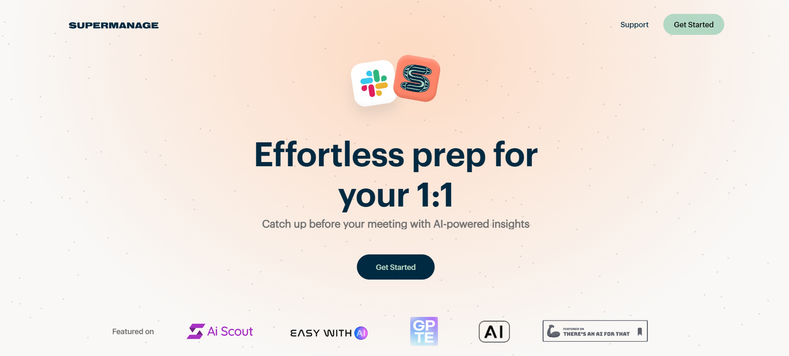 Supermanage AI is an innovative tool designed to help managers efficiently prepare for their 1-on-1 meetings by providing AI-powered insights. This tool distills essential information from Slack channels, presenting it in a concise and customized snapshot. By leveraging Supermanage AI, managers can better understand their team’s contributions, challenges, and engagement, leading to more meaningful and productive meetings.