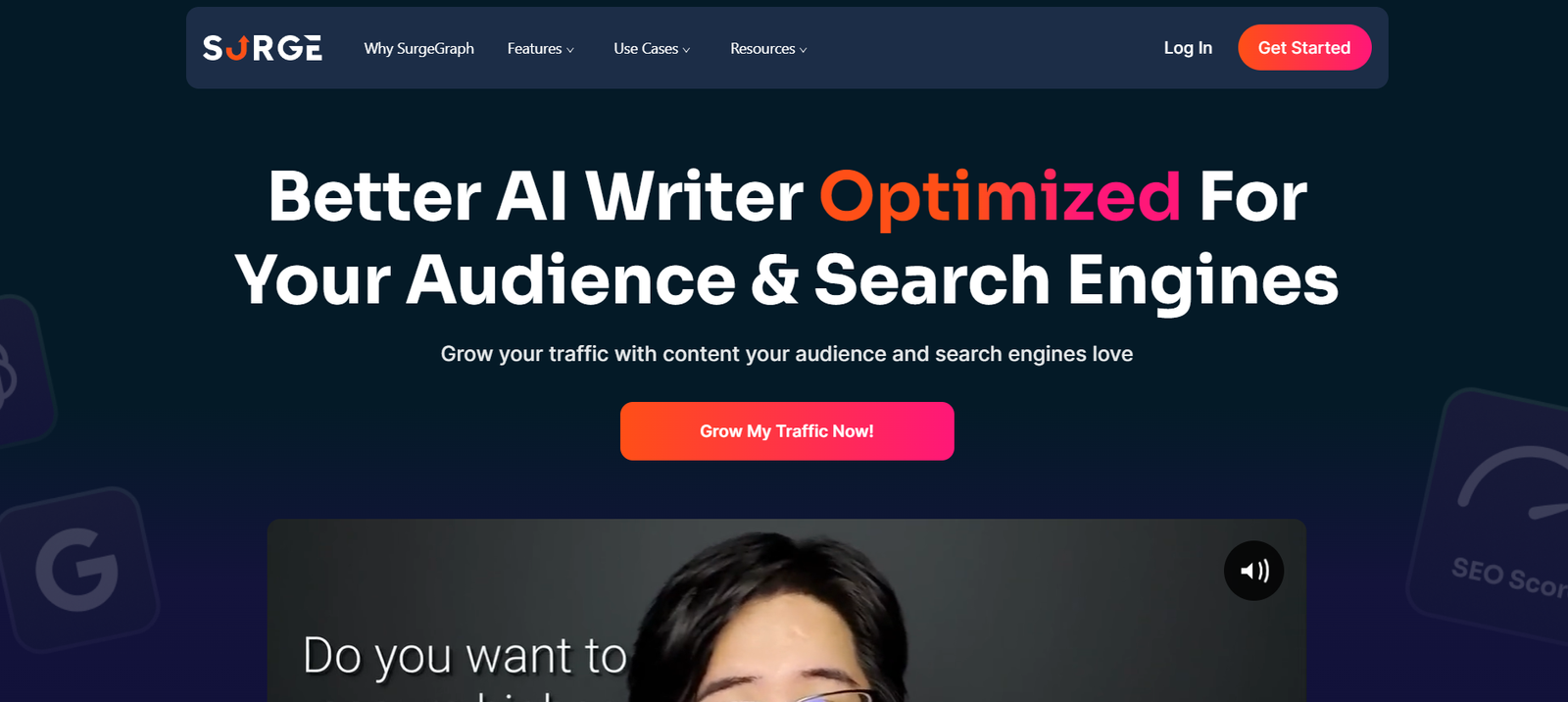 SurgeGraph is an AI-driven tool designed to optimize content creation and SEO, helping users grow their organic traffic. By leveraging advanced algorithms and natural language processing (NLP) techniques, SurgeGraph generates high-quality, SEO-optimized content quickly and efficiently. Its robust capabilities make it a valuable asset for businesses and content creators aiming to improve their online visibility and engagement.