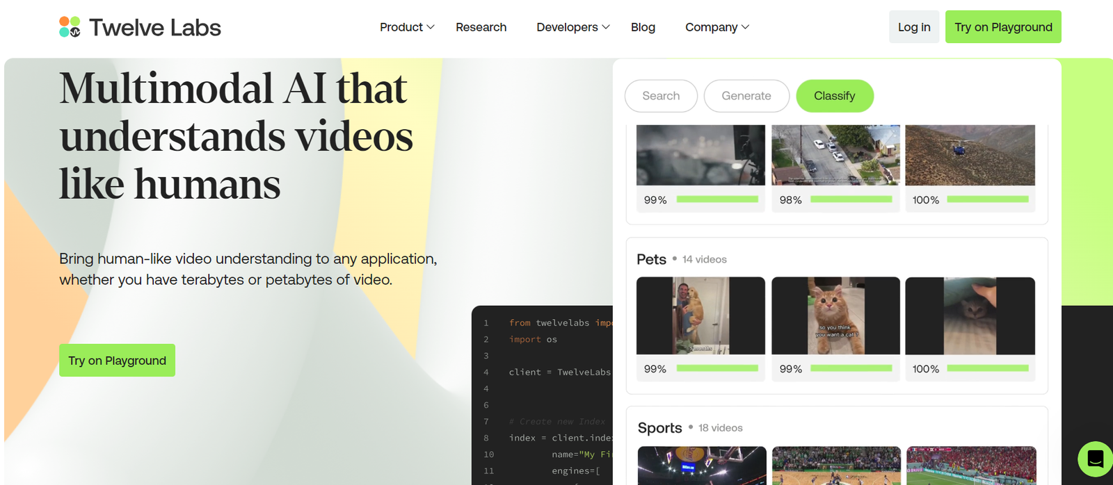 Twelve Labs offers a multimodal AI tool designed to bring human-like understanding to video applications. This advanced technology can handle vast amounts of video data, making it ideal for various business needs. By leveraging state-of-the-art video foundation models, Twelve Labs enables accurate search, generation, and classification of video content, transforming how organizations interact with their video libraries.