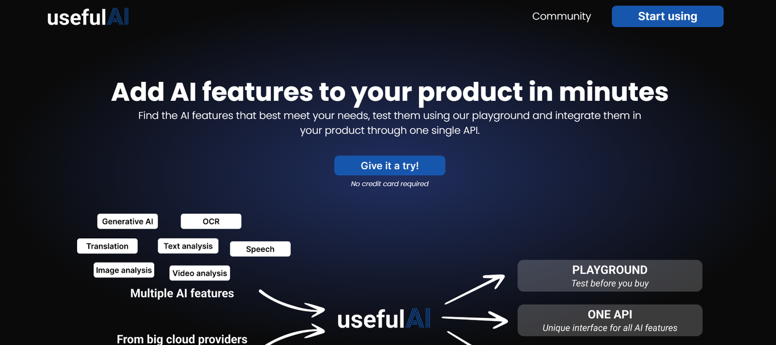 UsefulAI is a versatile platform that simplifies the integration of artificial intelligence features into various products. It offers a user-friendly playground to test and compare AI solutions, making it easy for businesses to find and implement the best AI tools for their needs. With UsefulAI, integrating powerful AI capabilities into your applications becomes a seamless process through a single API.