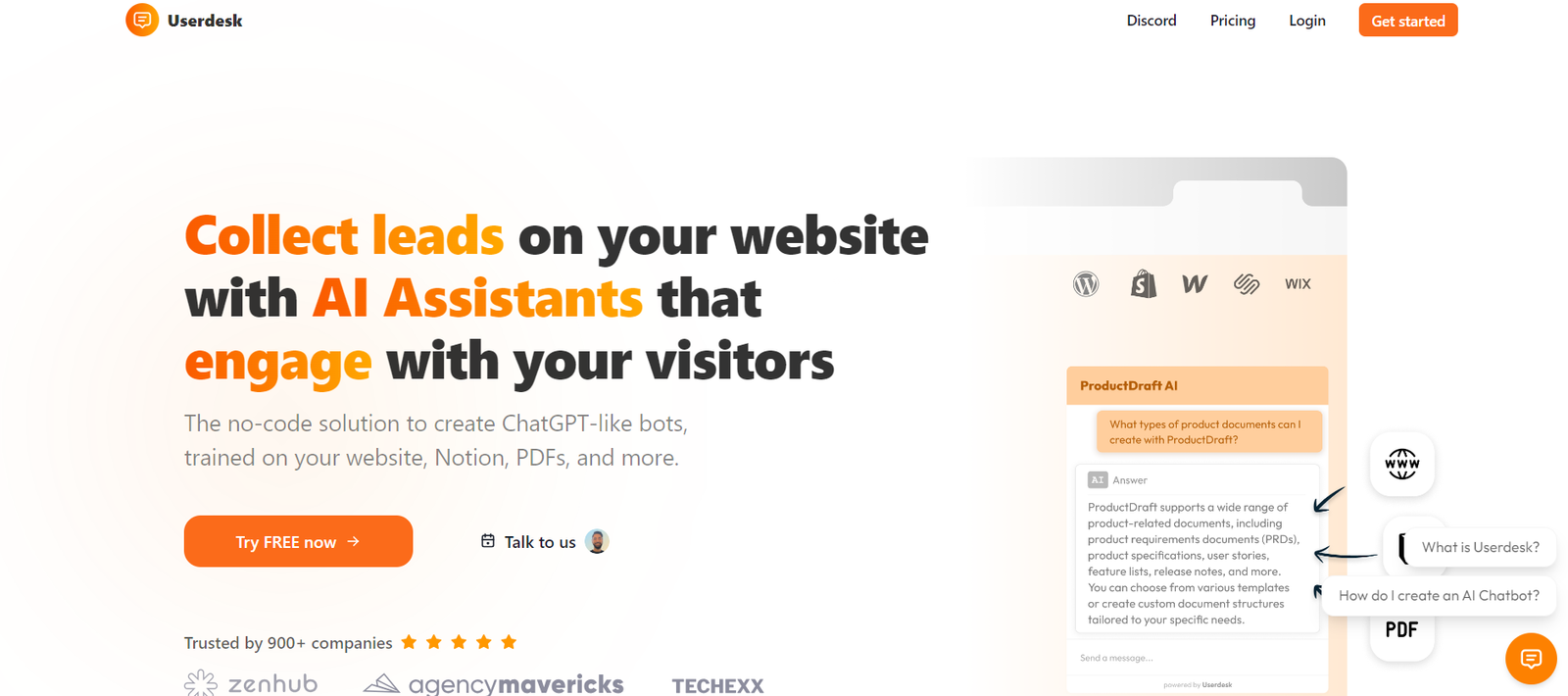 Userdesk is an innovative AI tool designed to help businesses enhance their lead generation and customer engagement through AI-powered assistants. With its no-code solution, Userdesk allows users to create customized chatbots that can be trained on their website content, Notion, PDFs, and more. Trusted by over 900 companies, Userdesk offers a seamless integration process that can be set up in minutes.