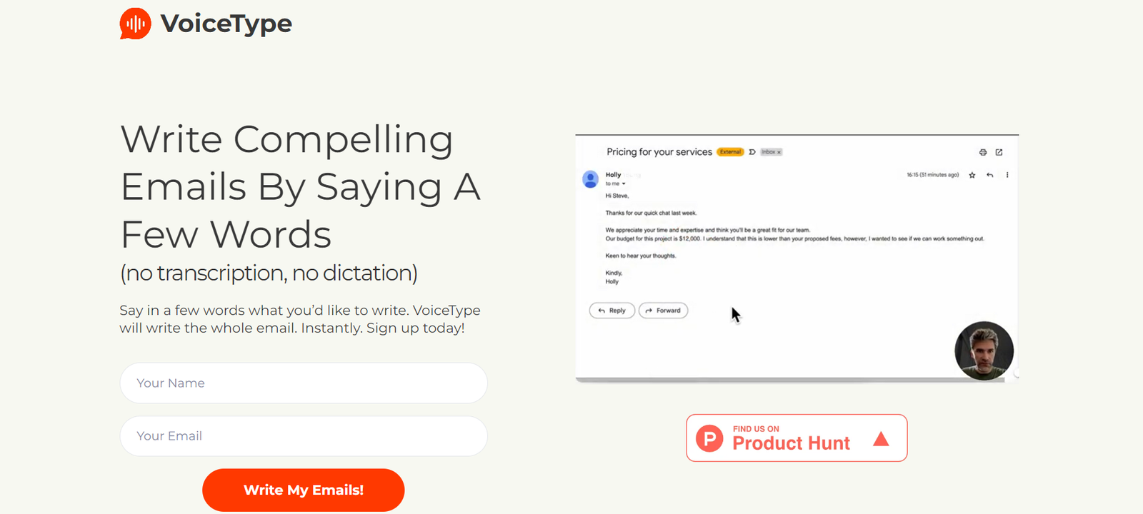 VoiceType is an AI-powered Chrome browser extension that allows users to write emails by simply speaking a few words. Designed to eliminate the need for transcription or dictation, VoiceType creates entire emails based on short verbal prompts. It ensures grammatically correct and professional emails, saving time and reducing stress for users who frequently communicate via email.
