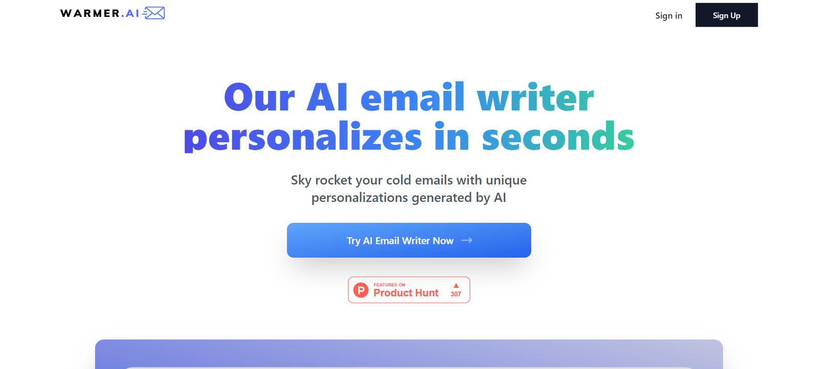 Warmer.ai is an advanced AI tool designed to enhance email personalization. By leveraging artificial intelligence, Warmer.ai can generate highly personalized emails for cold outreach, aiming to increase response rates, meetings, and sales. This innovative tool is especially beneficial for sales and marketing professionals looking to streamline their email communication.