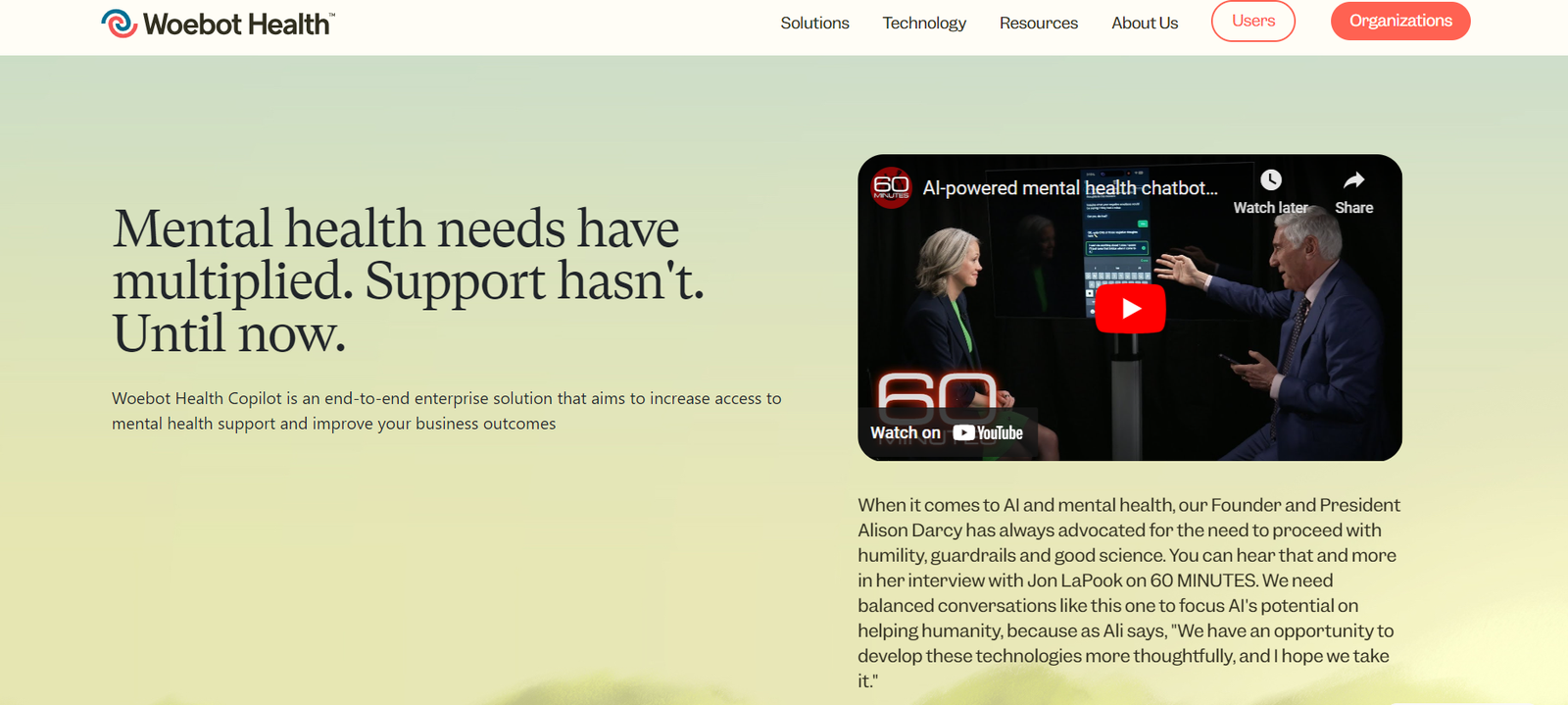 Woebot Health provides a scalable enterprise solution for mental health support through its digital companion, Woebot. This AI-driven tool is designed to offer instant, chat-based mental health assistance, enhancing care experiences and improving population health outcomes. Recognized for its innovation, Woebot Health aims to make mental health support more accessible and effective for various populations.