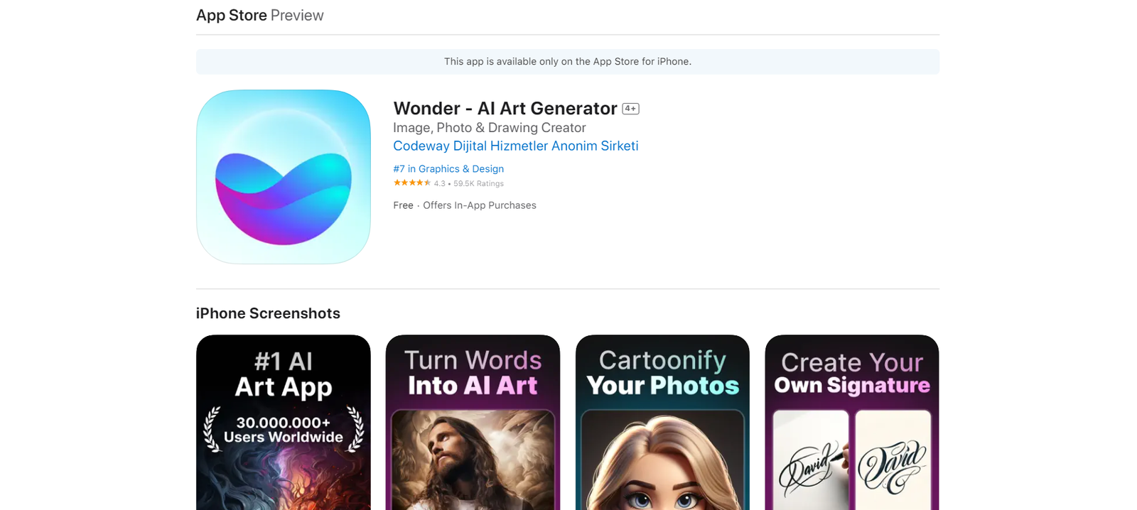 Wonder – AI Art Generator is a creative tool that transforms words into stunning digital artworks. By simply entering a prompt and selecting an art style, users can watch their ideas come to life in seconds. This app offers a fun and easy way to create unique art pieces without any drawing skills required.
