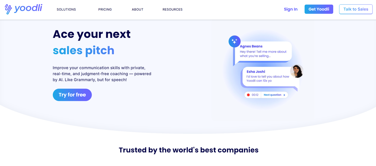 Yoodli is an AI-powered communication coaching platform designed to improve your speaking skills without the pressure of an audience. It provides personalized feedback on various aspects of communication, helping users to enhance their confidence and effectiveness in public speaking, sales pitches, job interviews, and other crucial conversations. The tool is built by experts, including world champions of public speaking, TED speakers, and speech coaches.