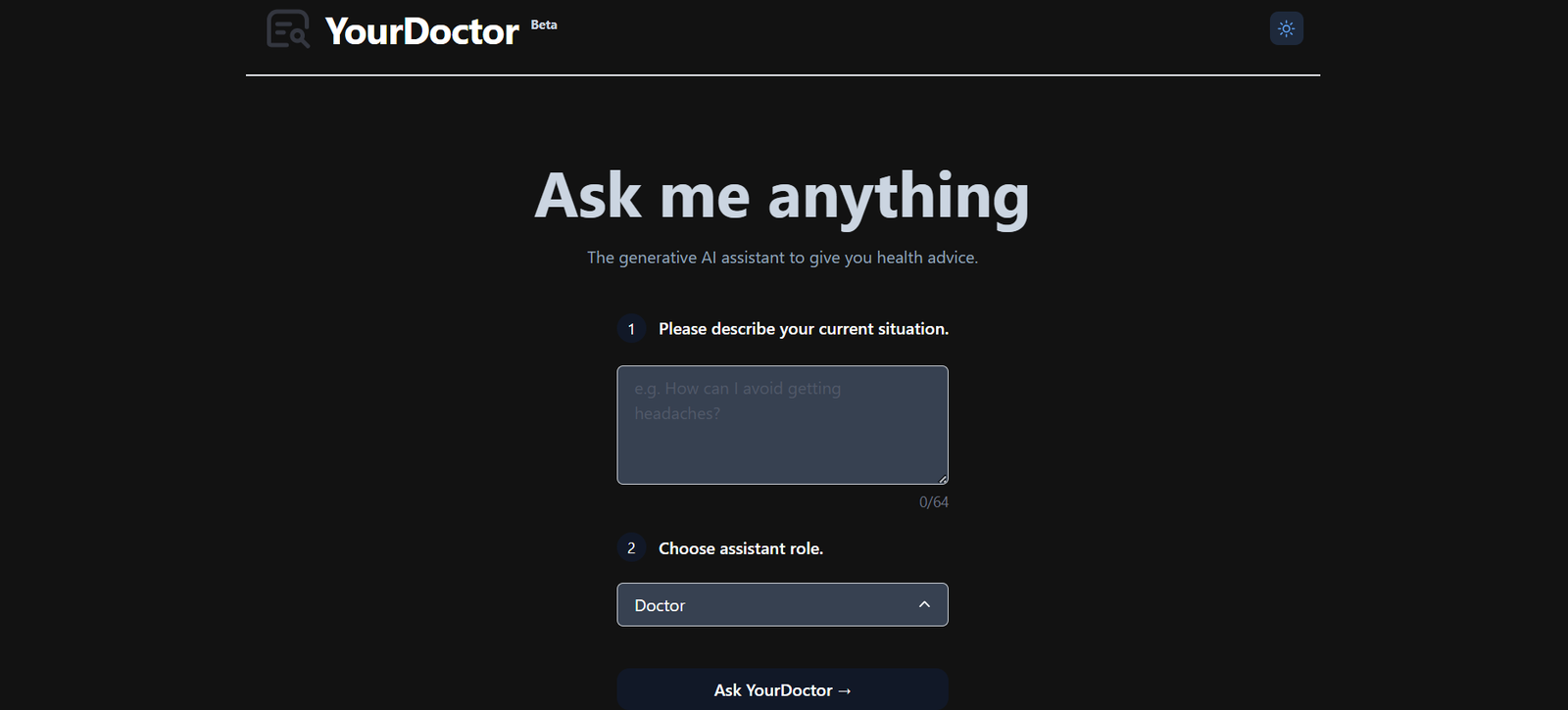 YourDoctor AI is a generative AI assistant designed to provide health advice. It interacts with users to understand their current situation and offers guidance based on the chosen assistant role, such as a doctor. This tool aims to make healthcare more accessible by providing immediate and personalized advice.