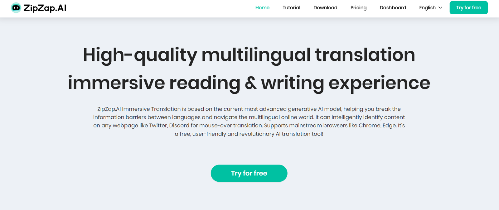 ZipZap.AI is a revolutionary AI-powered translation tool designed to break language barriers on the web. It offers an immersive reading and writing experience by providing high-quality multilingual translations directly on web pages. This tool supports mainstream browsers like Chrome and Edge, ensuring seamless integration and ease of use. With its advanced generative AI model, ZipZap.AI intelligently identifies and translates content on platforms such as Twitter and Discord.