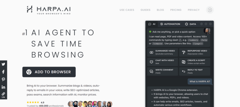 Browser extension that integrates AI for web automation, content creation, and productivity enhancement.