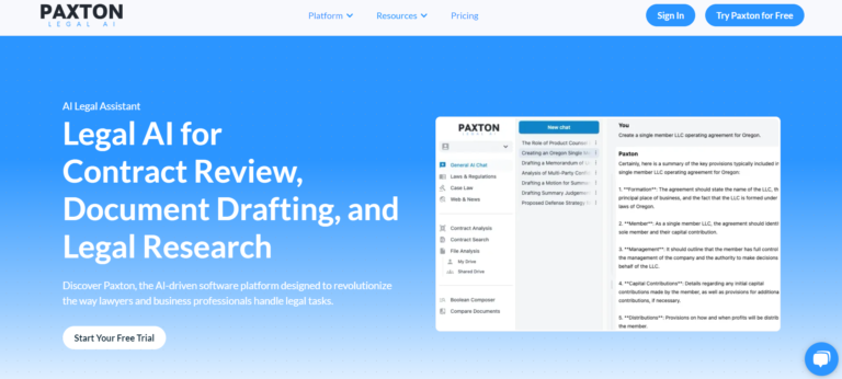 Paxton is an AI-powered assistant for legal professionals, automating contract review and legal drafting.