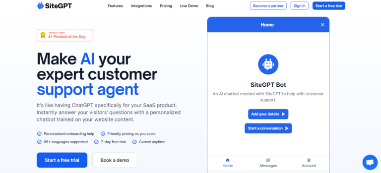 SiteSpeakAI is an AI tool that automates customer support with custom GPT chatbots.