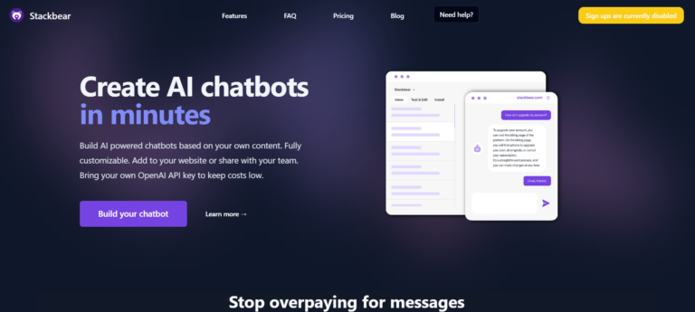 Stackbear is an AI tool for building customizable chatbots integrated with your website content.