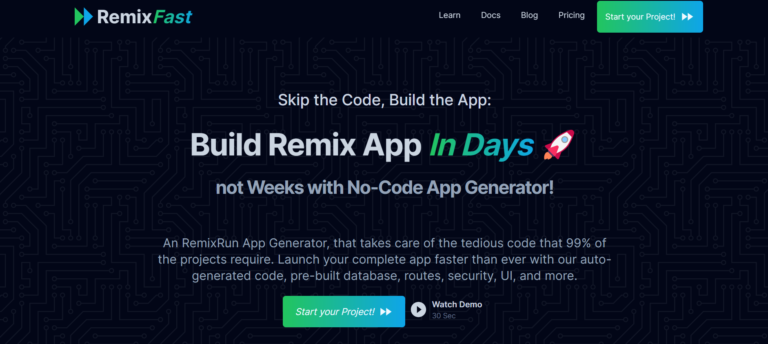 No-code AI-driven app builder generating production-ready SaaS applications.