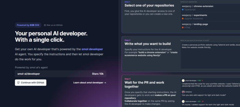 Smol Developer is an AI tool that automates coding tasks based on user instructions.