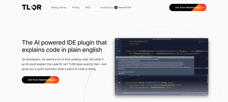 AI-powered IDE plugin that explains code in plain English, supporting various programming languages.