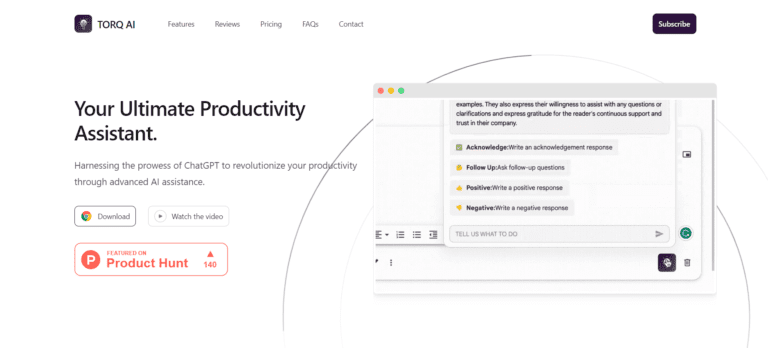 Torq AI boosts productivity with AI-powered email, text processing, and search integration.