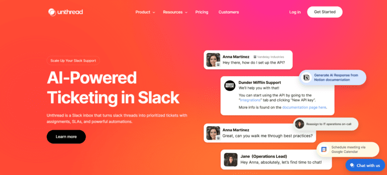 Unthread provides AI-powered support directly in Slack, enhancing ticket management and automation.