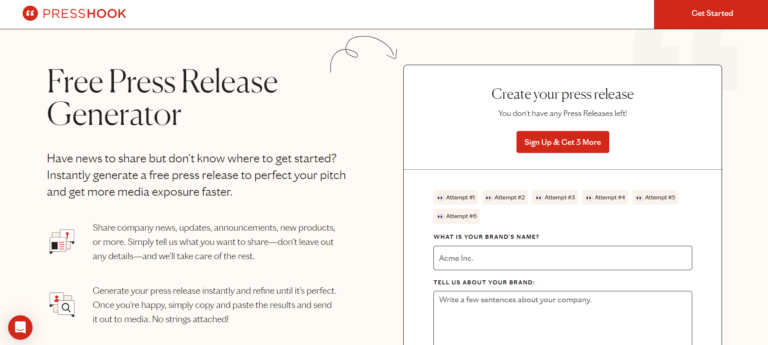 Press Hook AI Press Release Generator