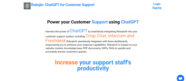 RobojinAI enhances customer support using ChatGPT, integrating seamlessly with major support platforms.