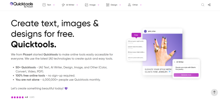 Over 50 free AI and design tools for text, images, and more.