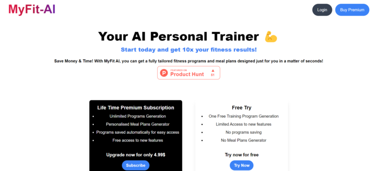 MyFit AI provides personalized fitness and nutrition plans using artificial intelligence.