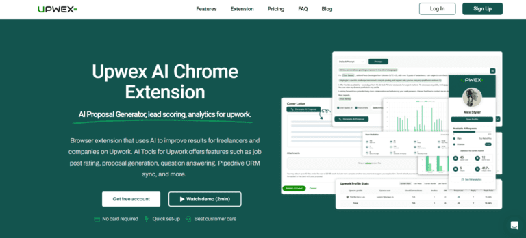 AI tool enhancing freelance success on Upwork through advanced proposal generation and CRM integration.
