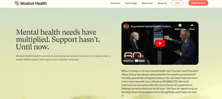 Woebot Health provides AI-driven mental health support through chat-based interactions.