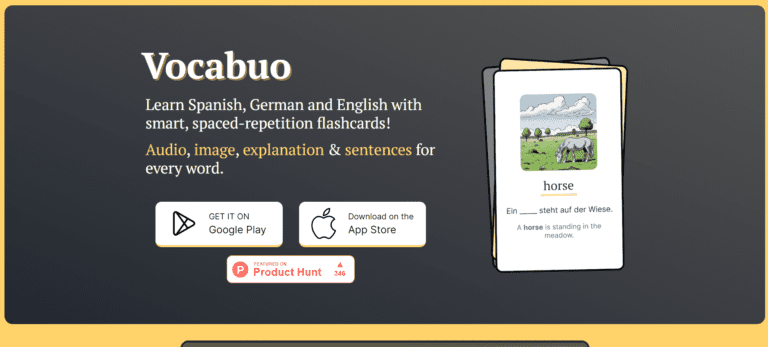 Vokabeln.io enhances vocabulary learning through AI-powered spaced-repetition flashcards.