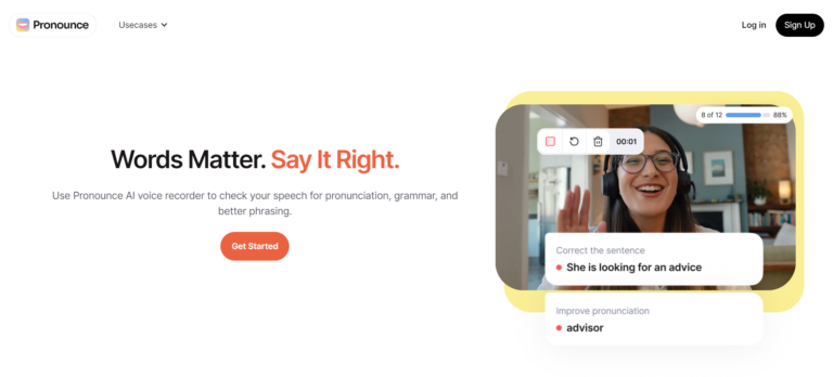 Pronounce is an AI speech checker that helps improve English pronunciation and grammar.