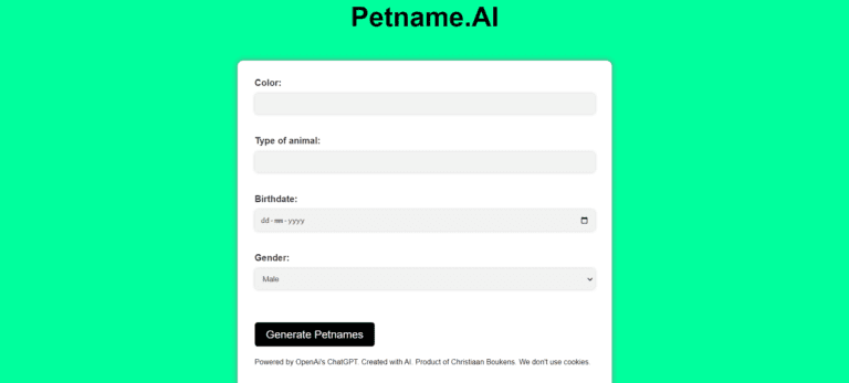 An AI-powered tool to generate unique pet names based on user inputs.