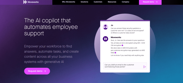 Moveworks automates employee support, leveraging AI to enhance productivity and efficiency.