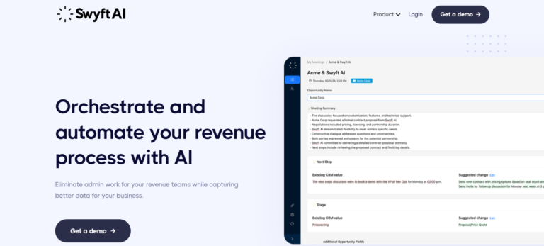 SwyftAI automates sales tasks and CRM data management, improving efficiency and data accuracy.