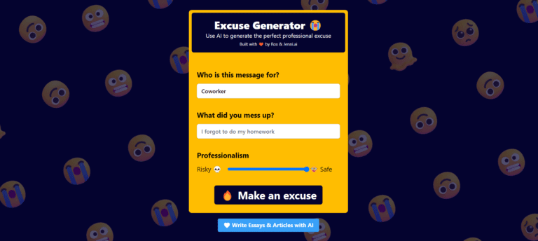 Excuses.ai is an AI tool designed to generate professional excuses quickly and effectively.