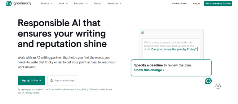AI writing assistant that improves grammar, style, and tone across various platforms.