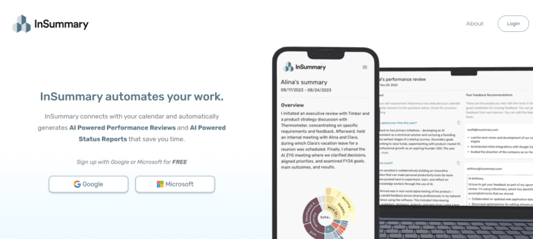 InSummary connects with your calendar to automate performance reviews and status reports.