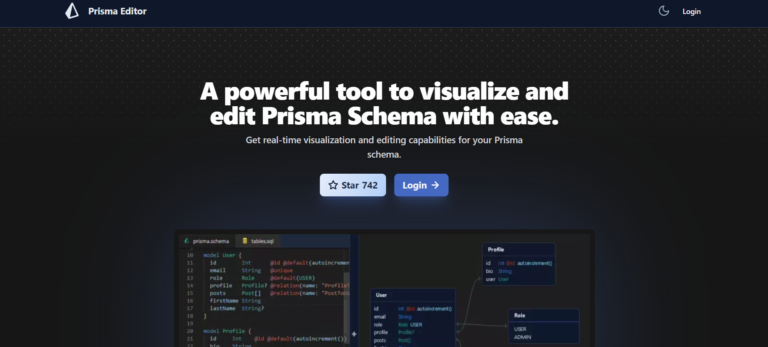 Prisma Editor simplifies Prisma schema visualization and editing with real-time capabilities and collaborative features.