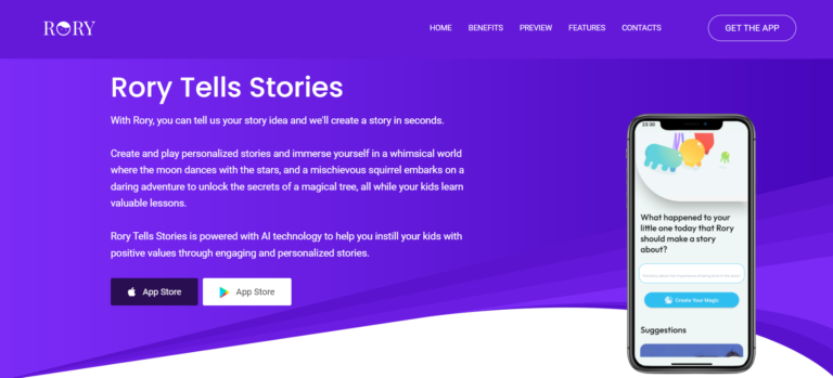 Rory App is an AI-powered storytelling platform that enhances language learning and provides personalized narratives.