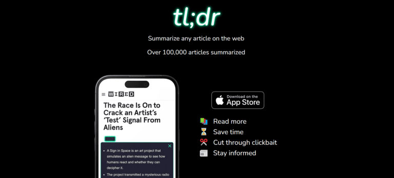 Instantly summarize any article on the web with tl;dr AI, saving time and cutting through clickbait.