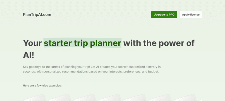 PlanTripAI generates custom travel itineraries based on user preferences.