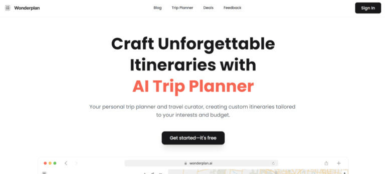 Wonderplan is an AI-driven trip planner that creates custom travel itineraries based on user preferences.