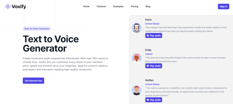 Voxify is an AI voice generator that transforms text into high-quality speech with customizable options.