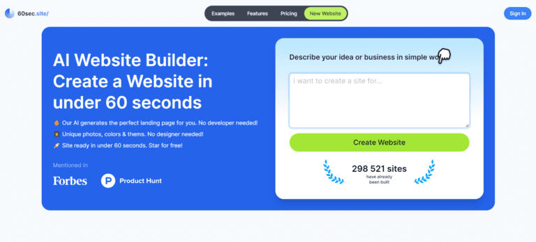 AI-powered website builder that creates professional landing pages in 60 seconds.