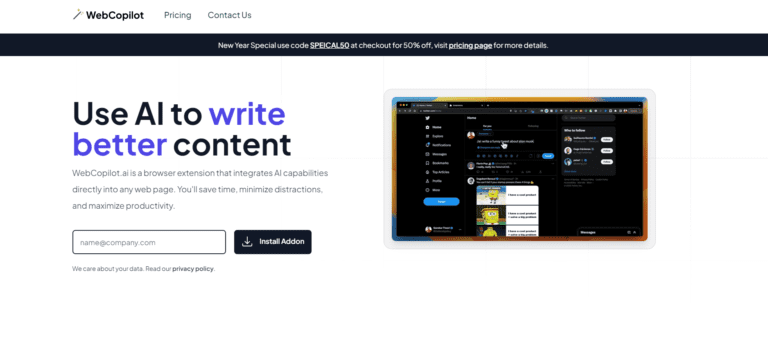 WebCopilot.ai is a browser extension that integrates AI into web pages to streamline tasks and boost productivity.