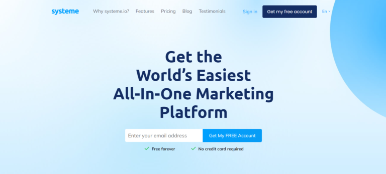 Systeme.io is an all-in-one marketing platform for creating sales funnels, managing email campaigns, building websites, and more.